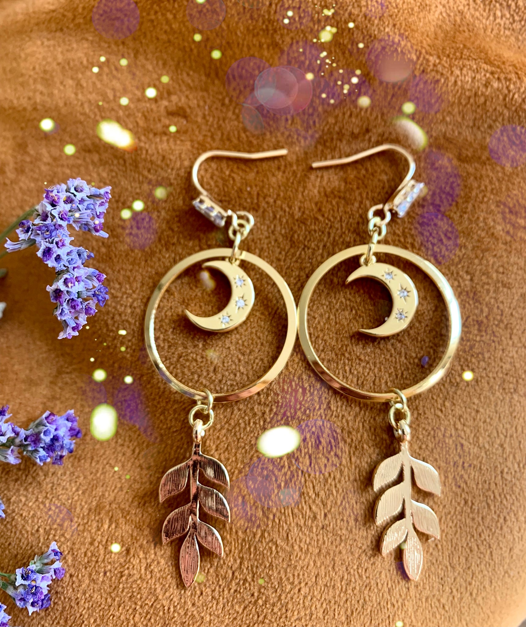 Stunning zirconia crystal moons, gold plated charms and earring hooks