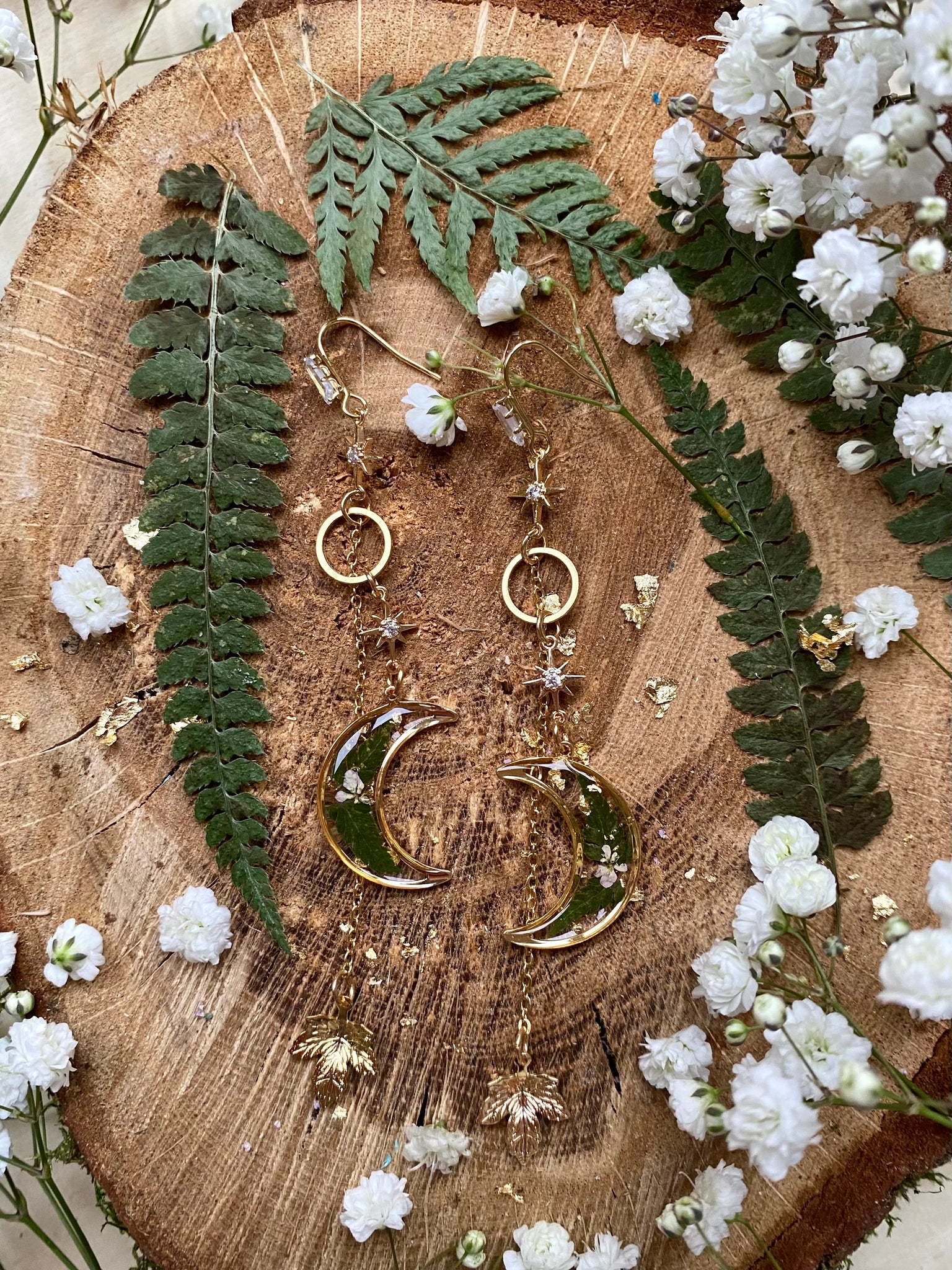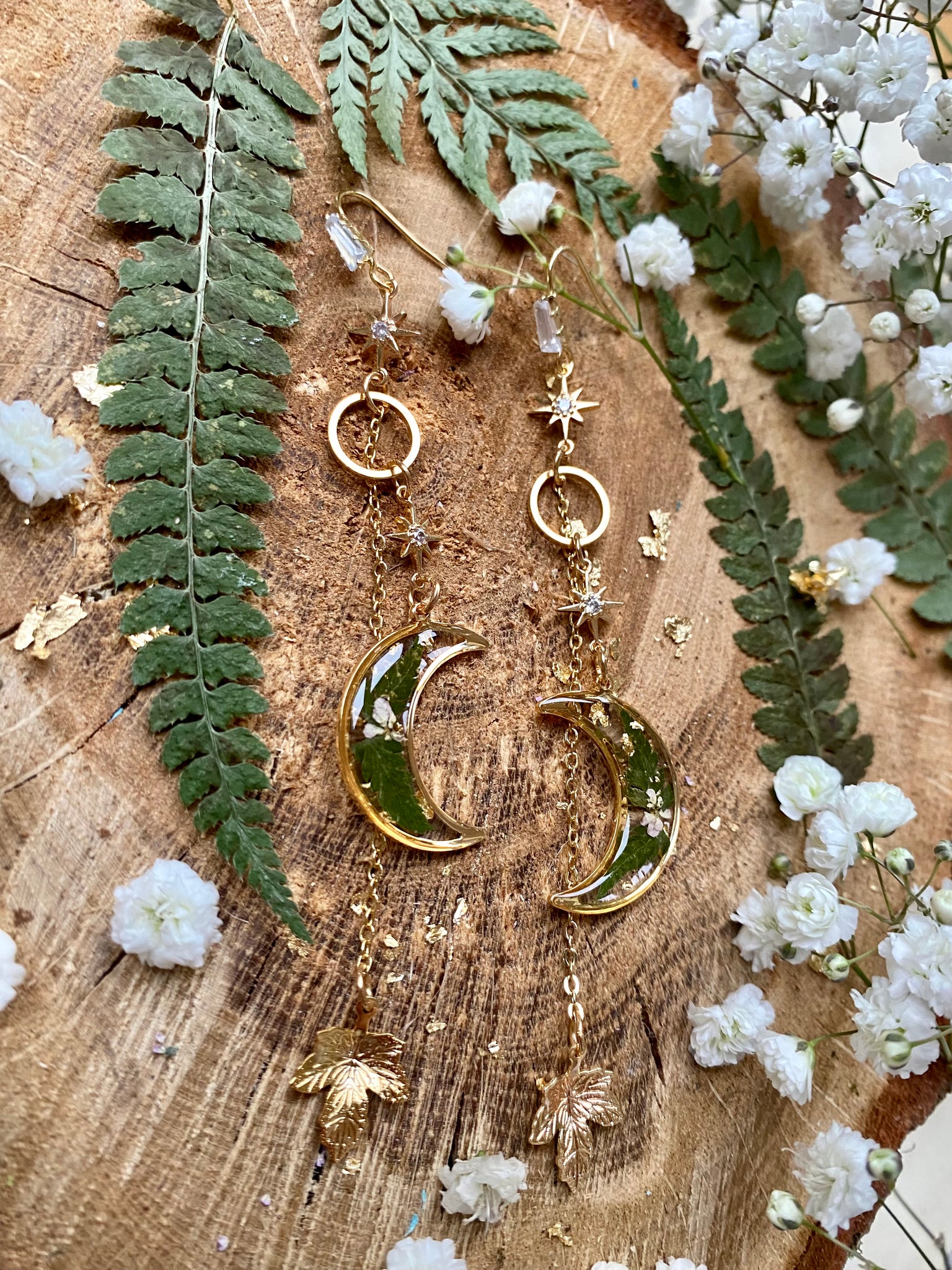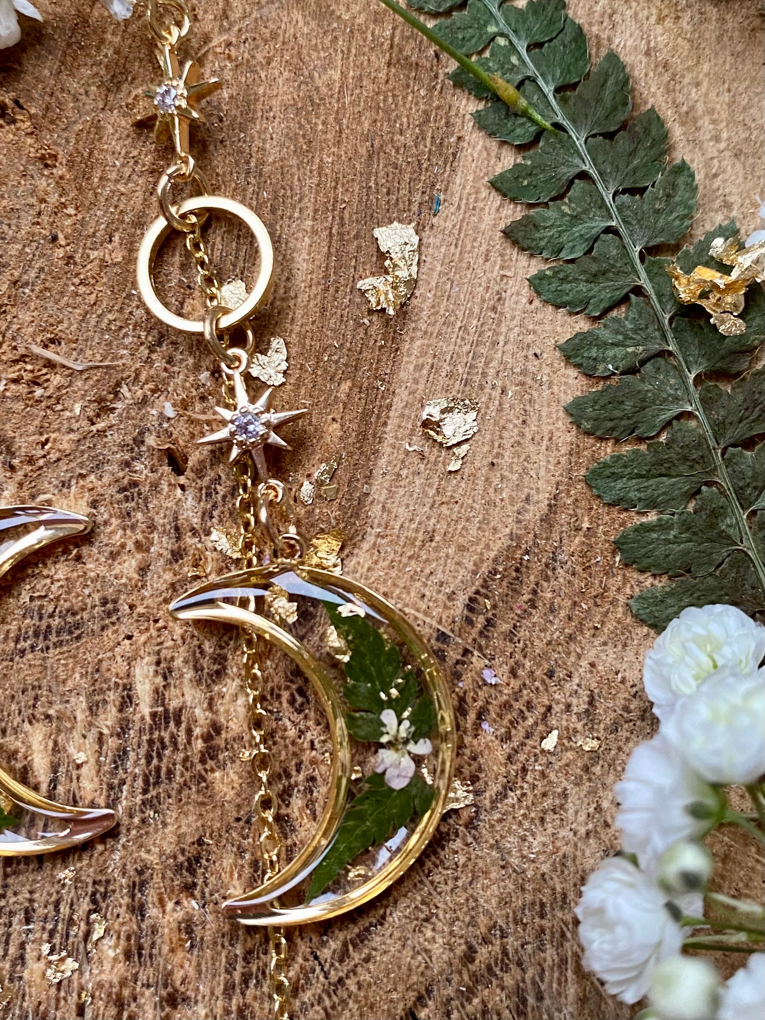 Stunning Wicklow fern leaves preserved with queen Anne’s lace flowers and gold leaf.