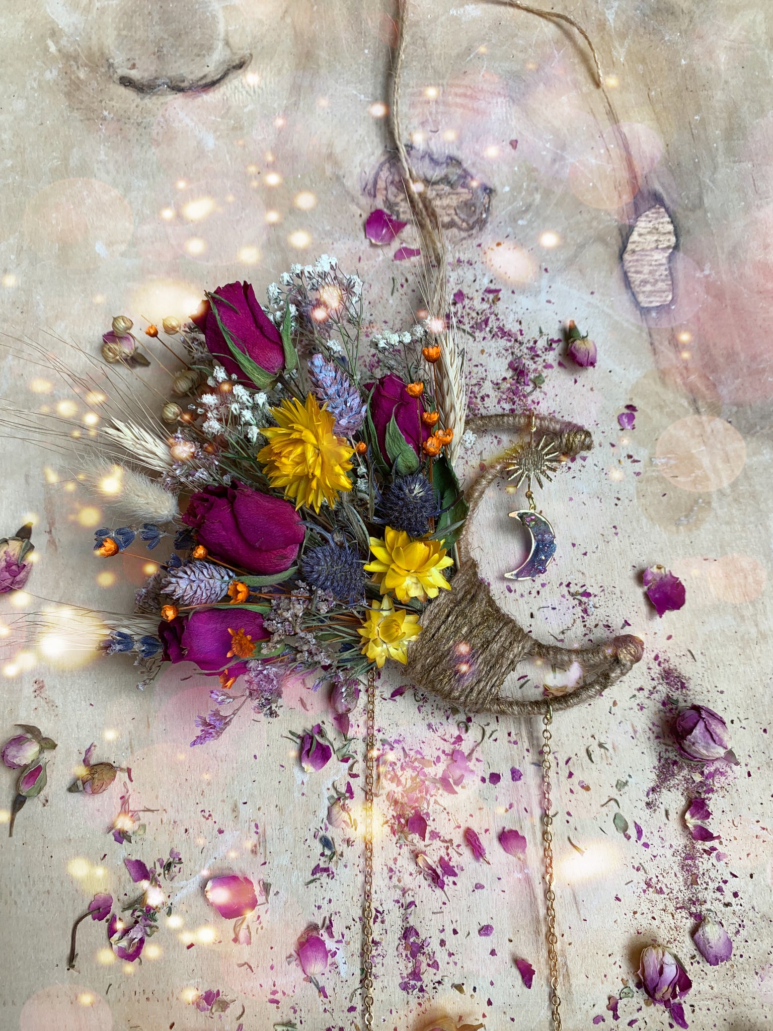 To keep flowers vibrant choose a cool dry area of your home to display your moon wreath.