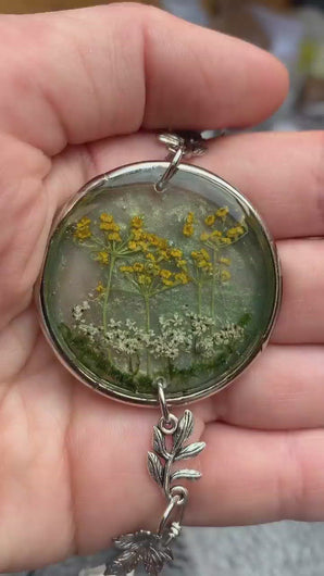 Wild Irish flowers that were hand picked at the end of summer set in shimmering green resin and stunning nature inspired charms.