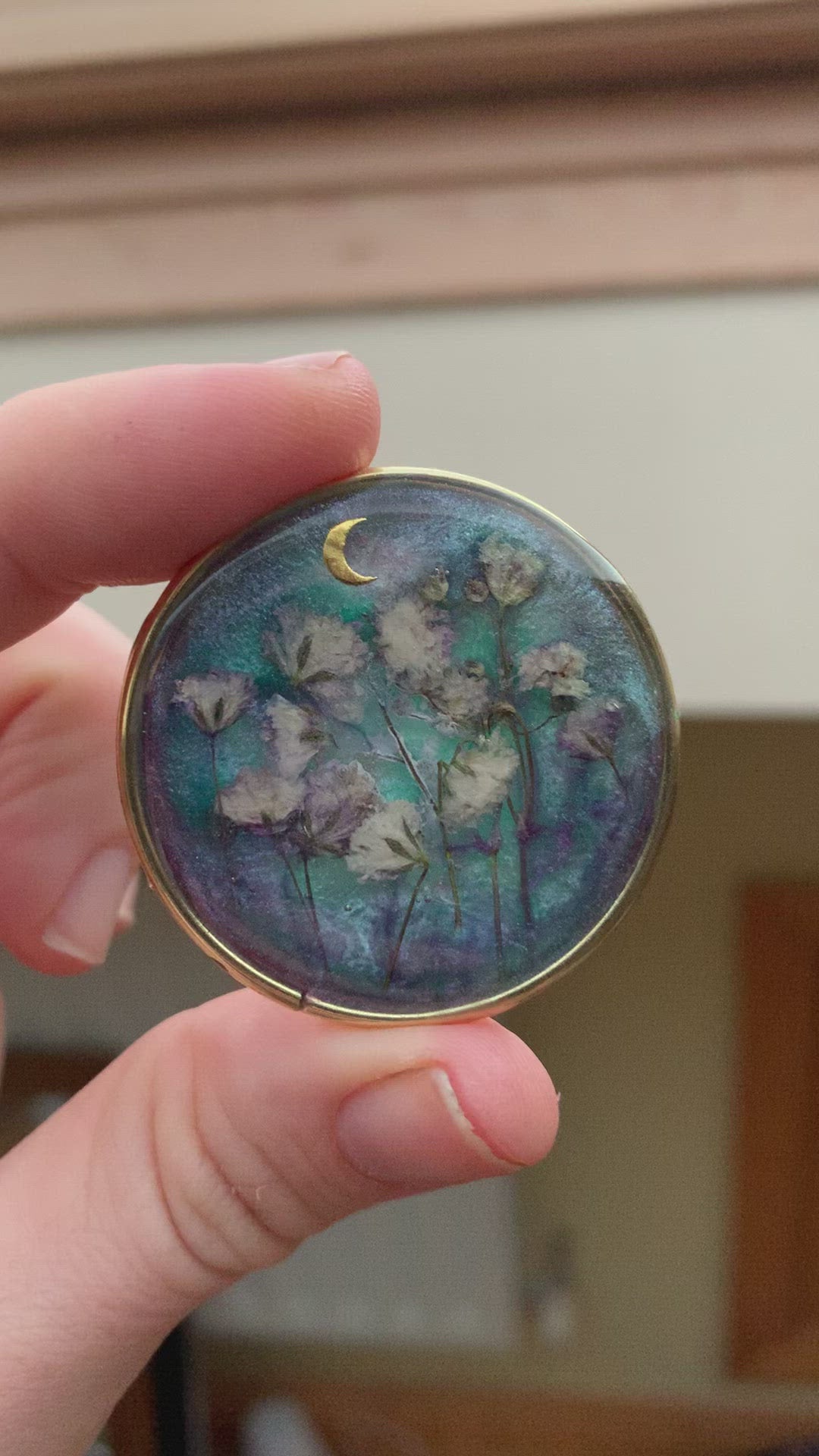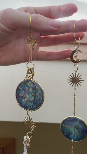 Druzy Angel Aura Crystals set in a moon Bezel with a gold plated charms.