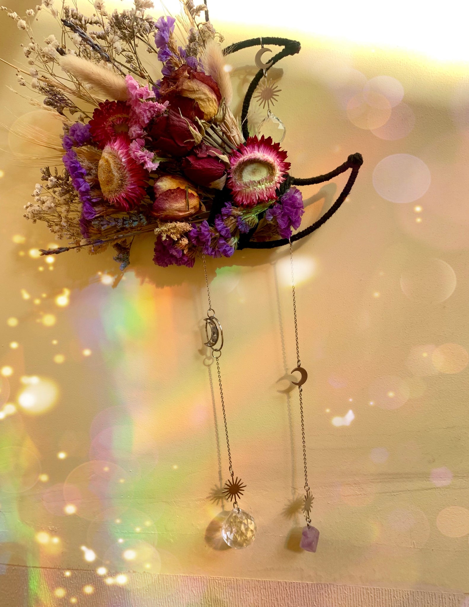 To keep flowers vibrant choose a cool dry area of your home to display your moon wreath.