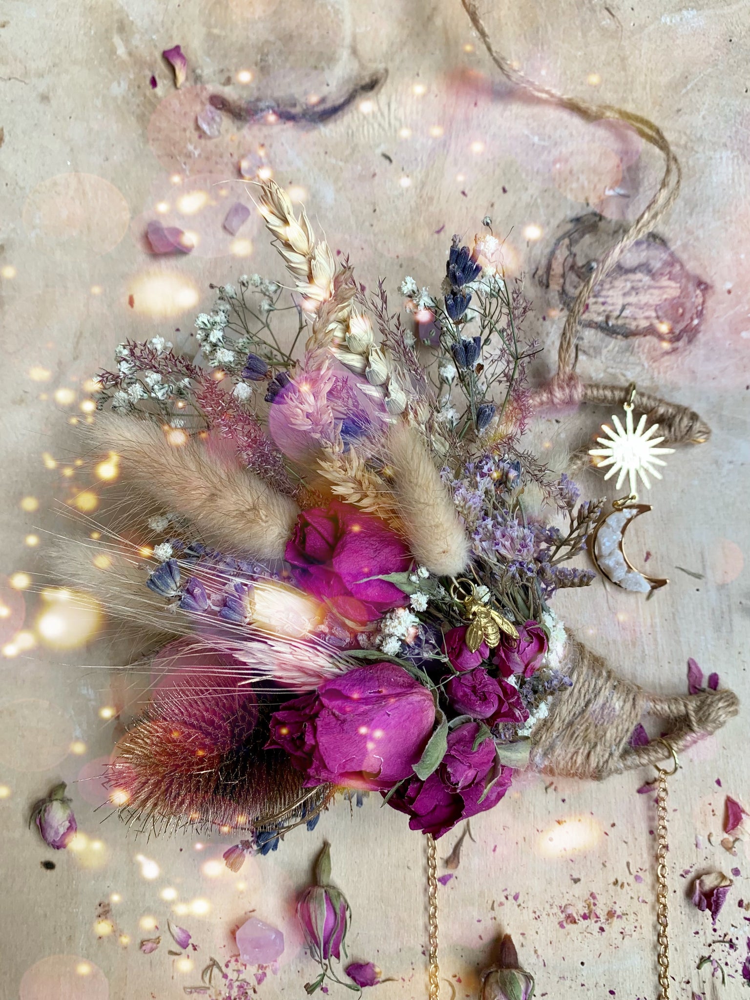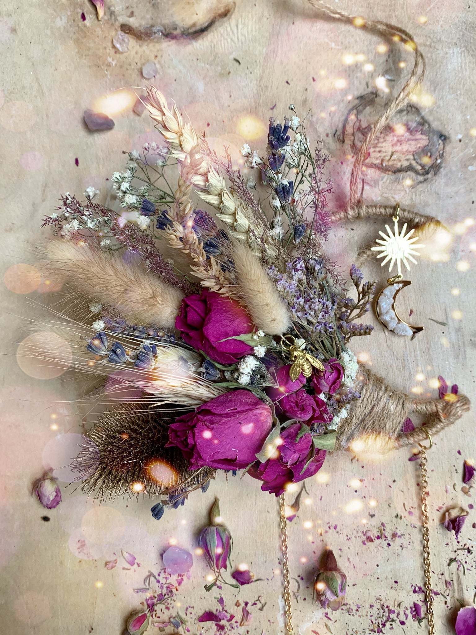 To keep flowers vibrant choose a cool dry area of your home to display your moon wreath.